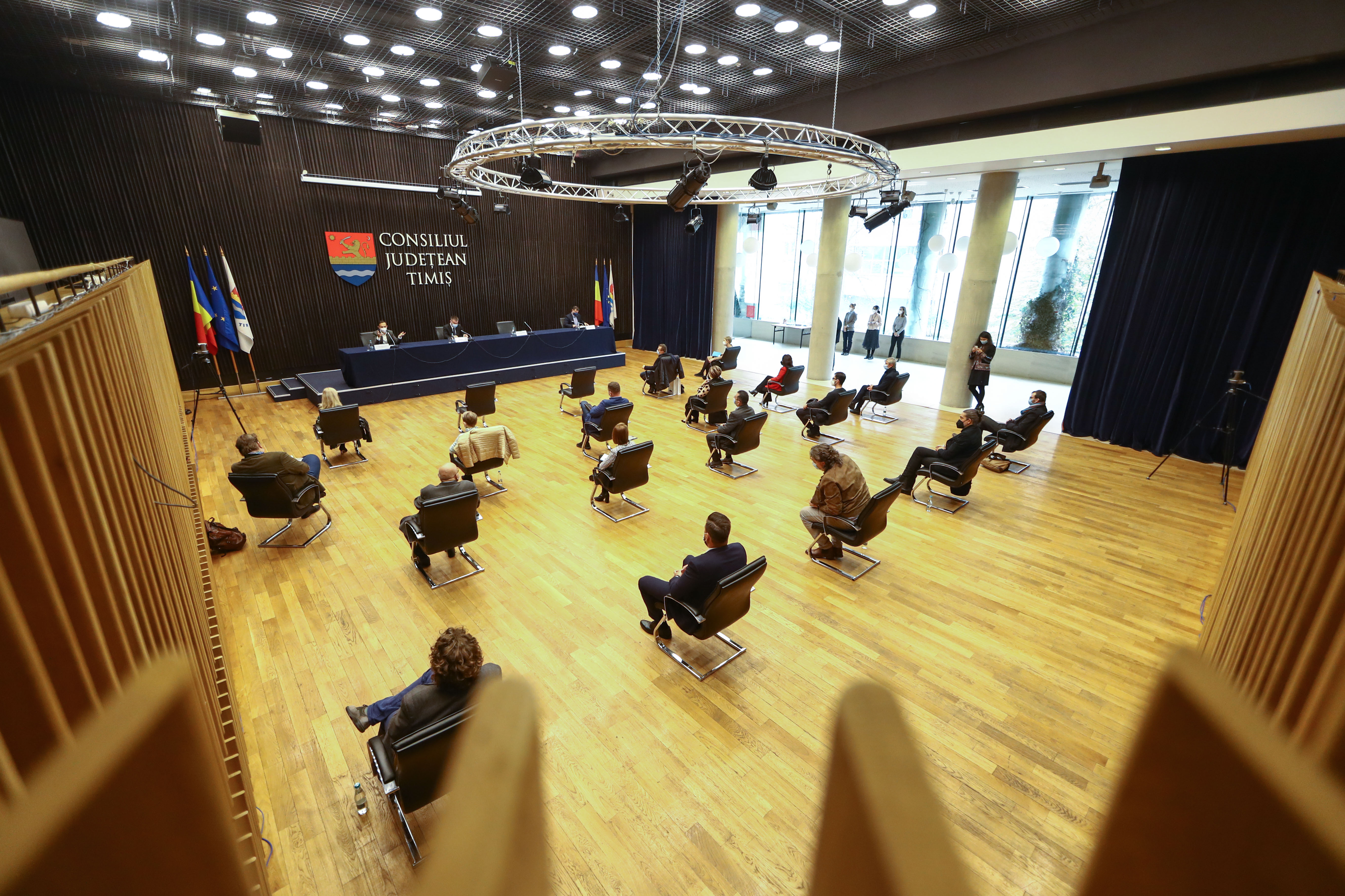 Consiliul Județean Timiș a găzduit, astăzi, 4 noiembrie, o dezbatere la nivel ministerial, menită a accelera implementarea proiectului Timișoara Capitală Europeană a Culturii, cât și a găsi soluții la problemele instituțiilor și oamenilor de cultură din județul nostru. Dezbaterea a fost ocazionată și onorată de prezența ministrului Culturii, Bogdan Gheorghiu. Acestuia i s-au alăturat reprezentanți ai instituțiilor și ONG-urilor de cultură din municipiu.