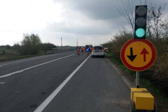 Lucrări între Voiteg și Denta. Circulația se desfășoară pe o singură bandă