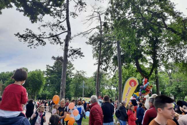 Aglomerație de 1 Iunie, în Parcul Copiilor din Timișoara. Copiii s-au distrat cu Minnie și Mickey Mouse